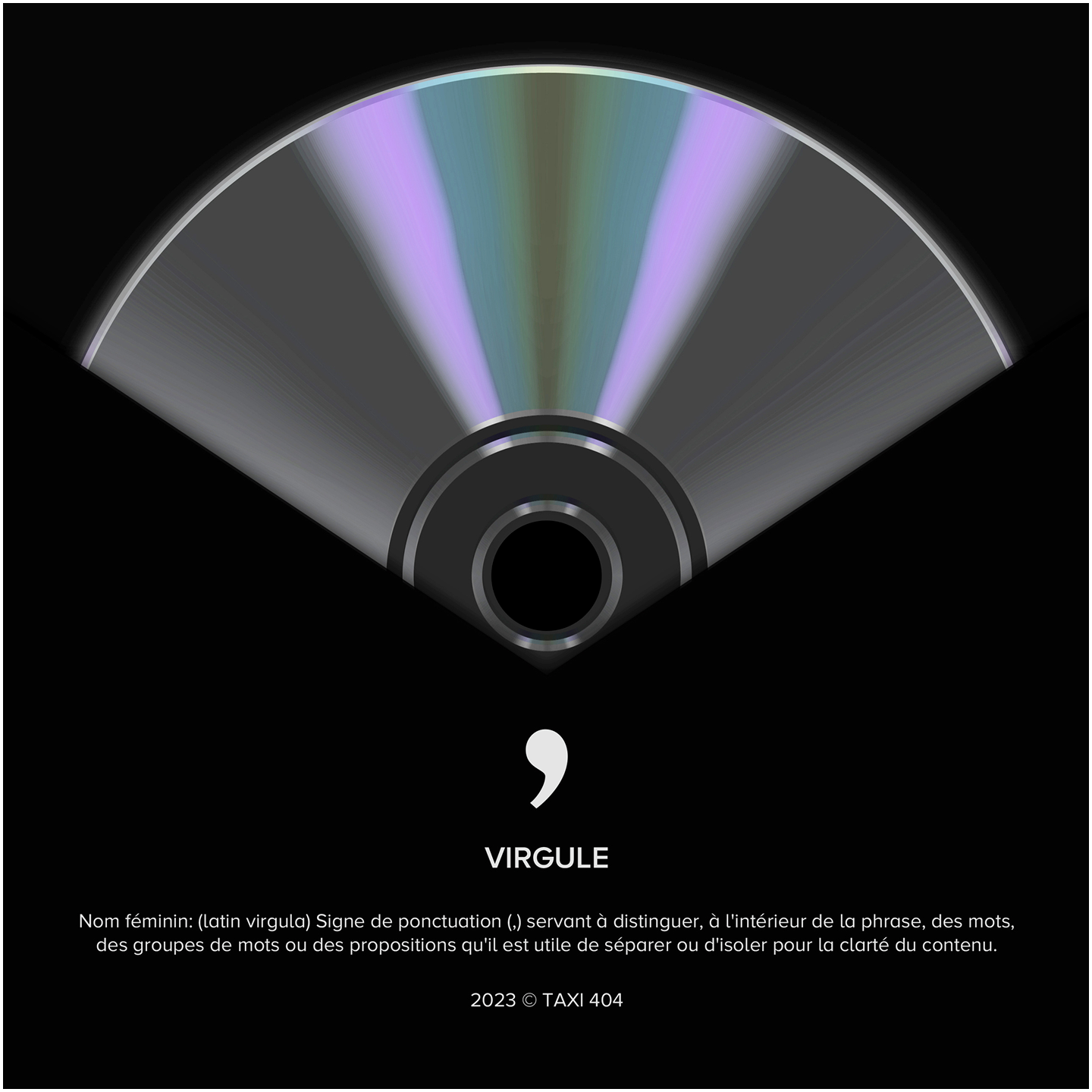A comma that refuses to end the sentence. The CD fragment is a skipped heartbeat, and the punctuation "," hovers between pause and surrender. The French definition “to separate for clarity” is the cruel joke. Here, the silence is the track.